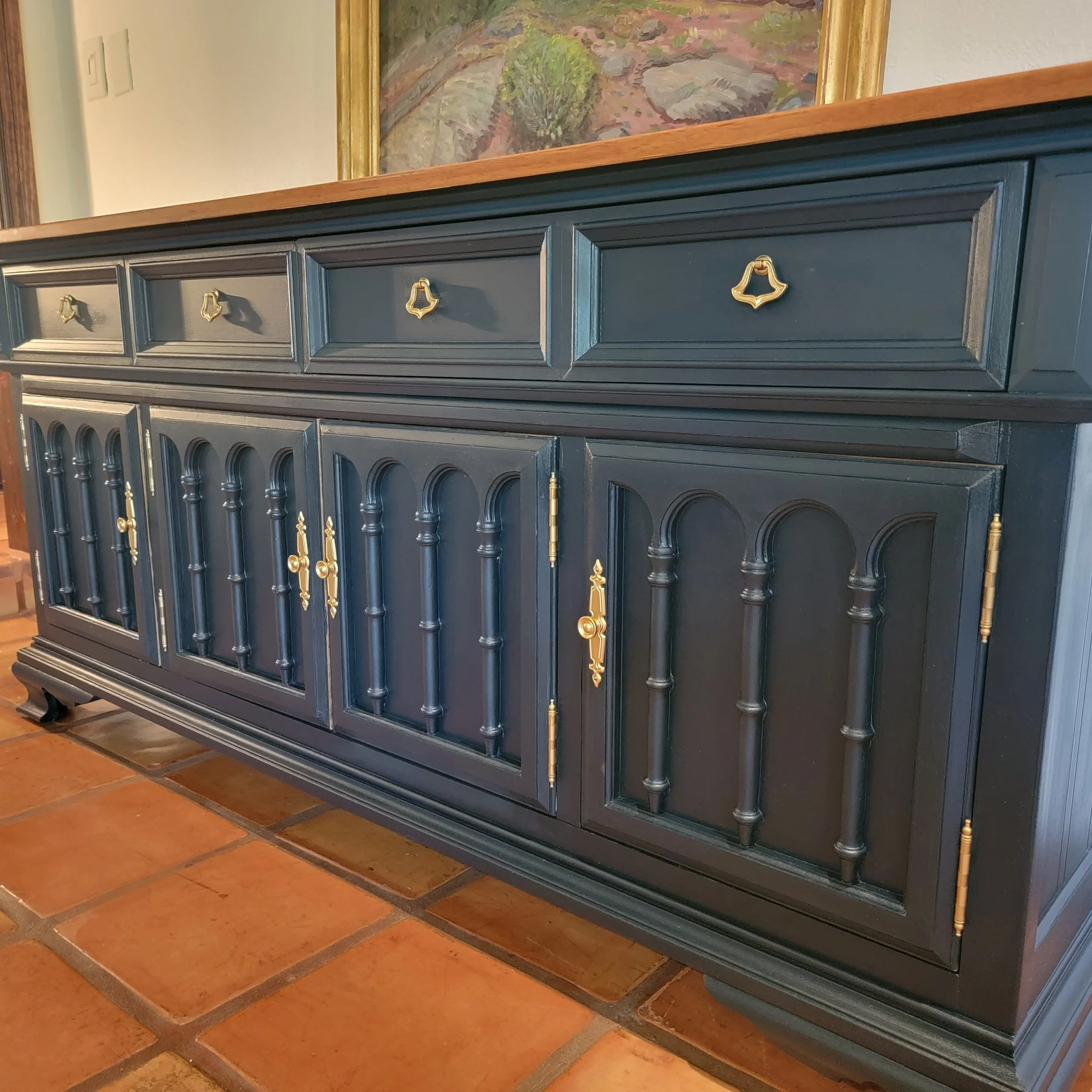 Thomasville 6 ft Buffet refinished in a custom blend of Wise Owl Chalk paint that I call Stormy Seas.